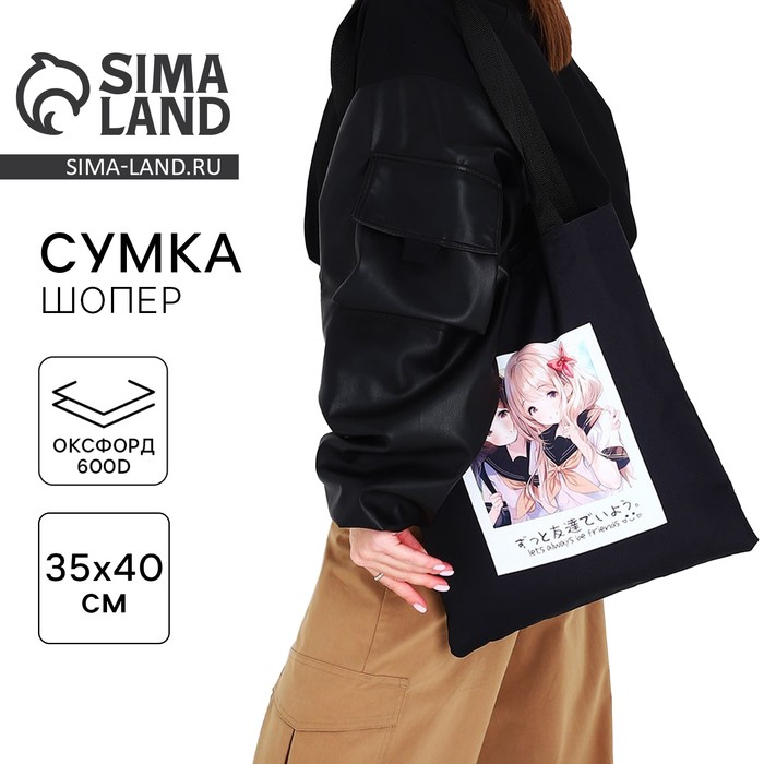 Сумка шопер Friends, аниме, 35×0.5×40 см, отдел без молнии, без подклада, чёрный