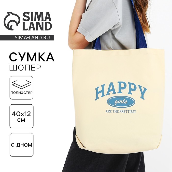 Сумка шопер Happy girl, 40×12×38, бежевый