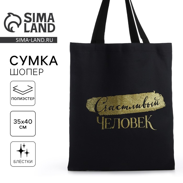 Сумка шопер «Счастливый человек», 35×0.5×40, без подклада, чёрный