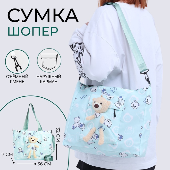 Сумка текстильная шопер на молнии, 36×7×32 см, зелёная