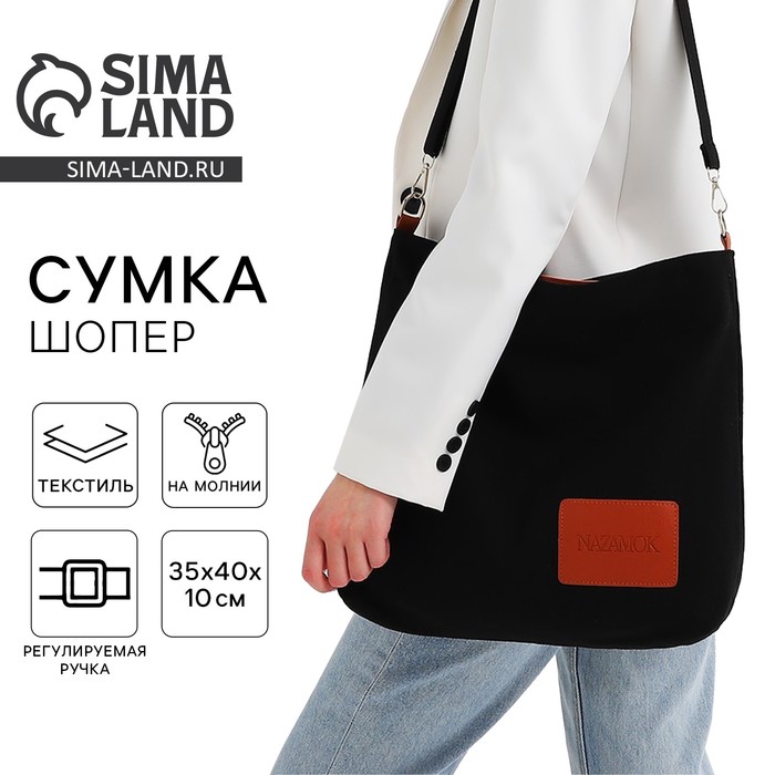 Сумка шопер текстильный NK, 40×35×10 см, отдел на молнии, чёрная
