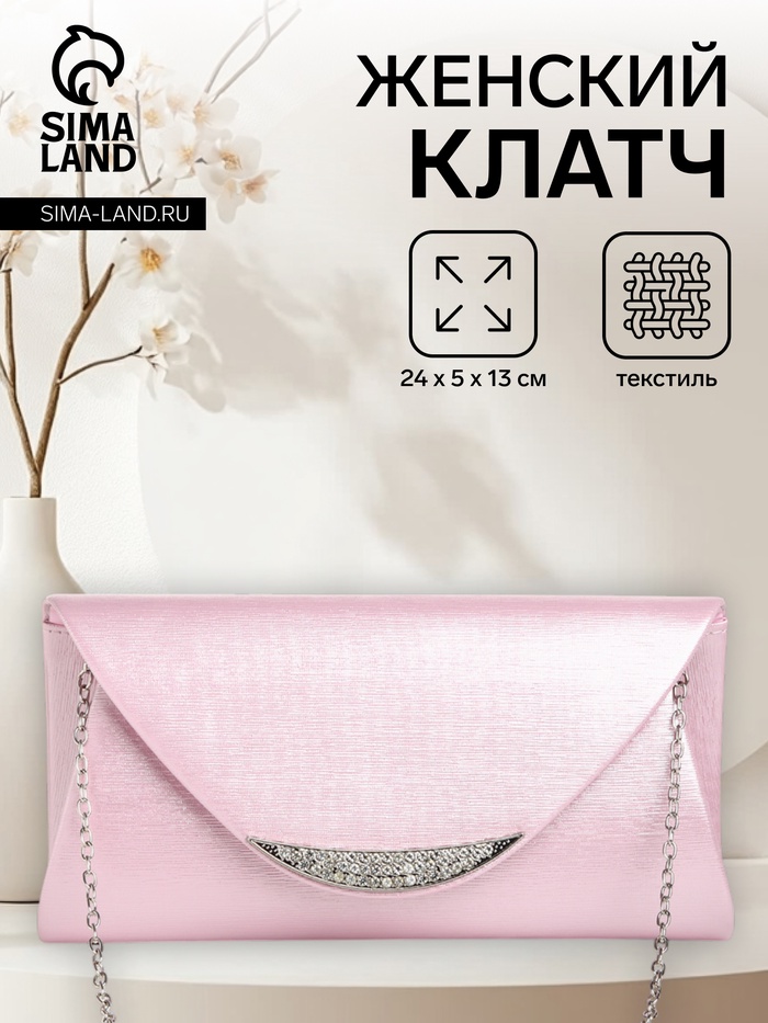 Сумка-клатч женская вечерняя на магните, на длинной цепочке, со стразами, мерцающая, розовая