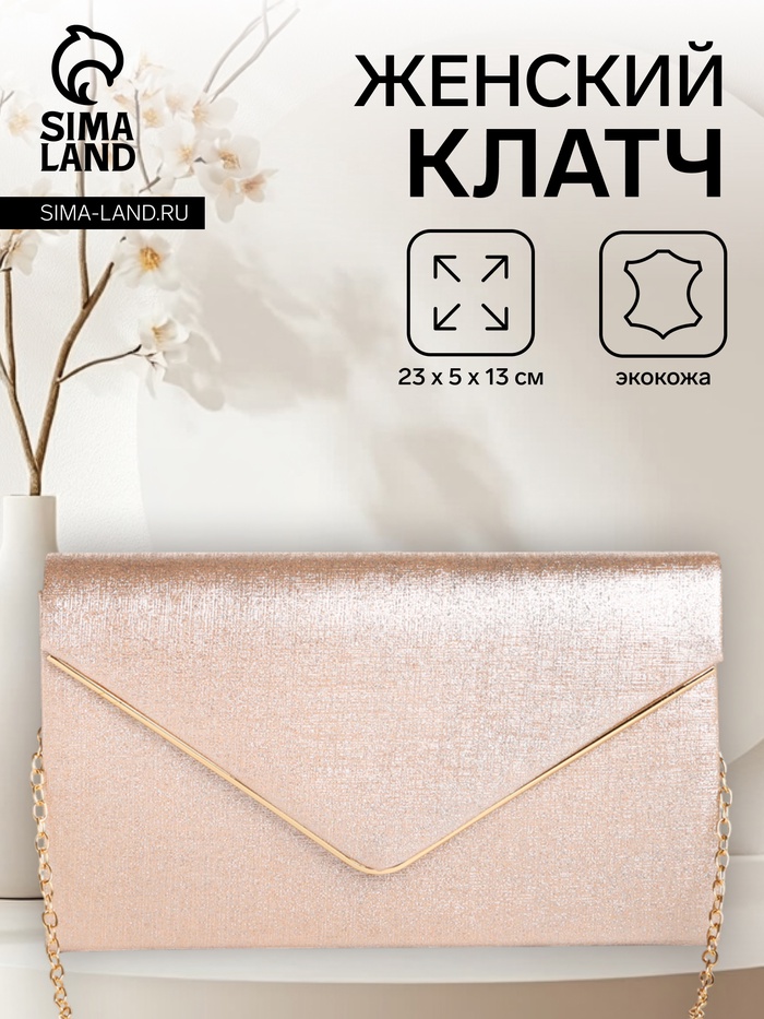 Сумка-клатч женская вечерняя на магните, на золотистой цепочке, мерцающая, светло-розовая