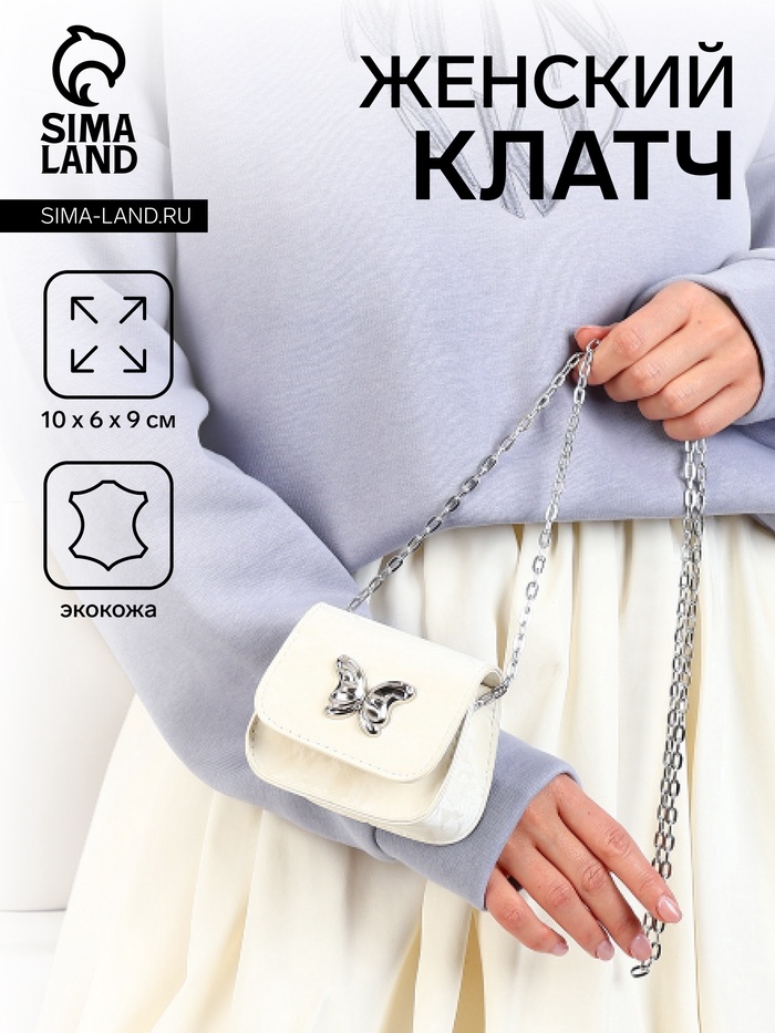 Сумка мини-клатч на магните, на длинной цепочке, белая