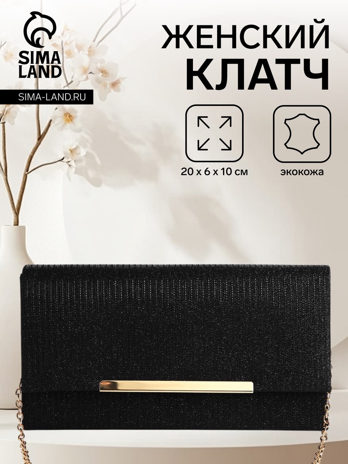 Сумка-клатч женская вечерняя на магните, на цепочке, мерцающая, чёрная