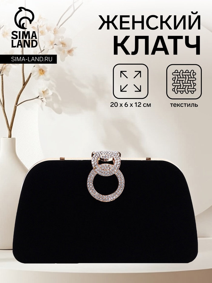 Сумка-клатч женская вечерняя на фермуаре, жёсткий корпус, с акцентной застёжкой, чёрная