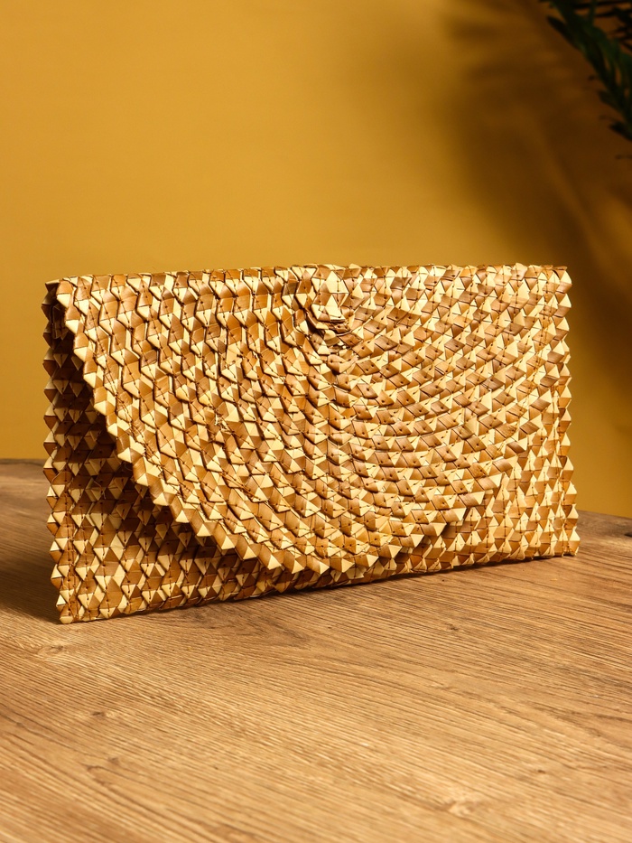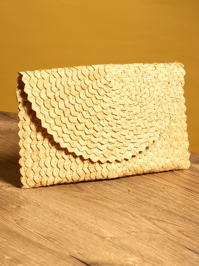 Сумка клатч плетёная из пальмового листа, 28×16×2 см, бежевая