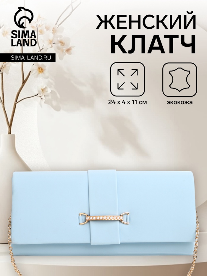 Сумка-клатч женская вечерняя на магните, на цепочке, с золотистой фурнитурой, однотонная, голубая