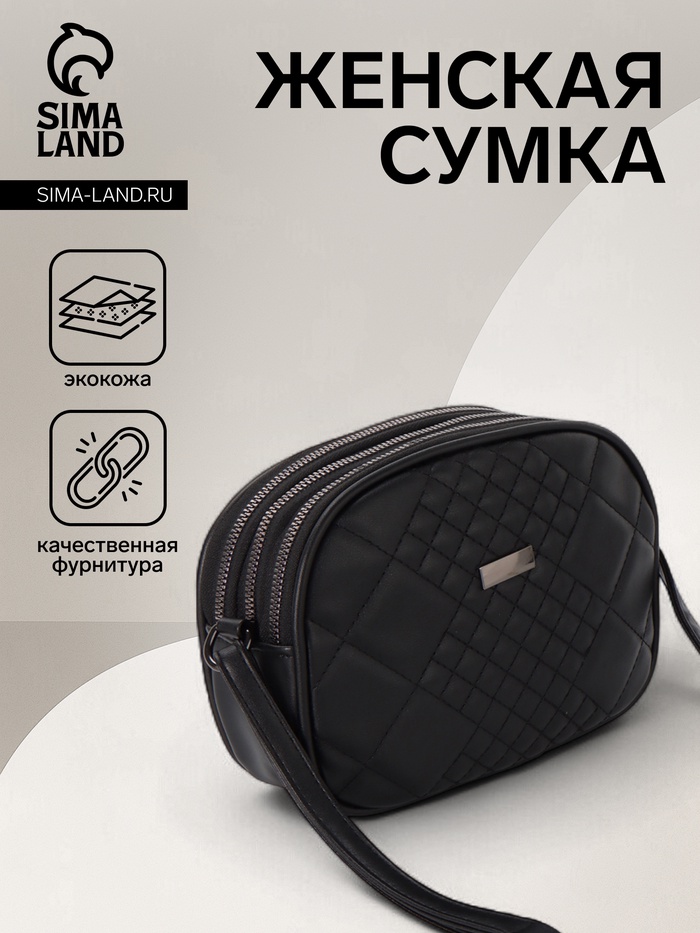 Сумка женская кросс-боди на молнии, 19×7×15 см, чёрная