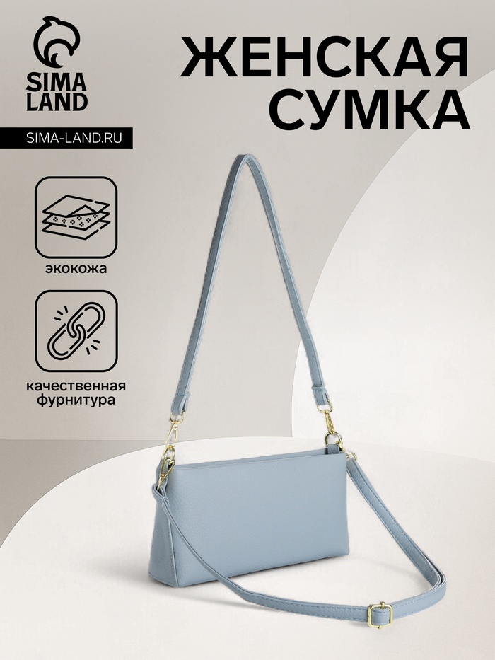 Сумка женская кросс-боди на молнии, 25.5×6.5×12.5 см, голубая
