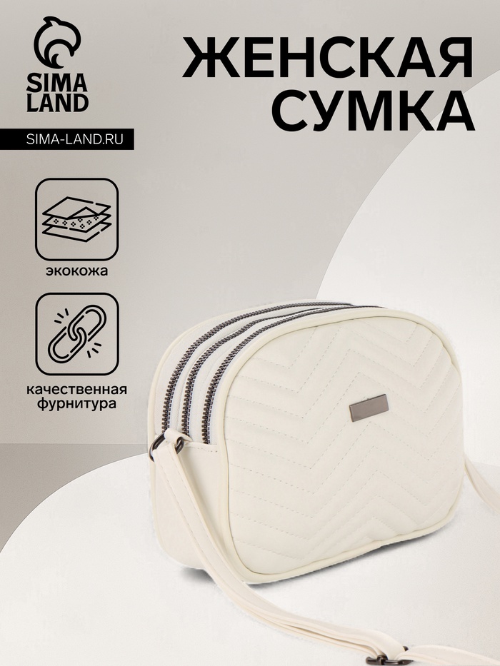 Сумка женская кросс-боди на молнии, 19×7×15 см, со стёжкой, бежевая