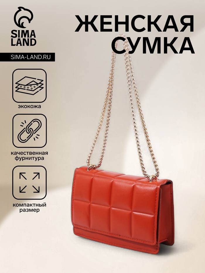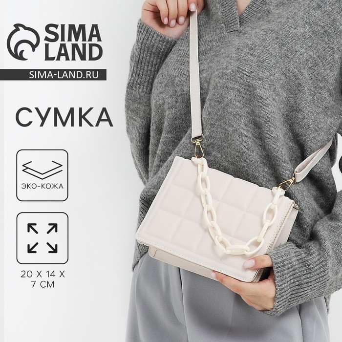 Сумка женская мессенджер из искусственной кожи с цепью, 14×20 см, молочная