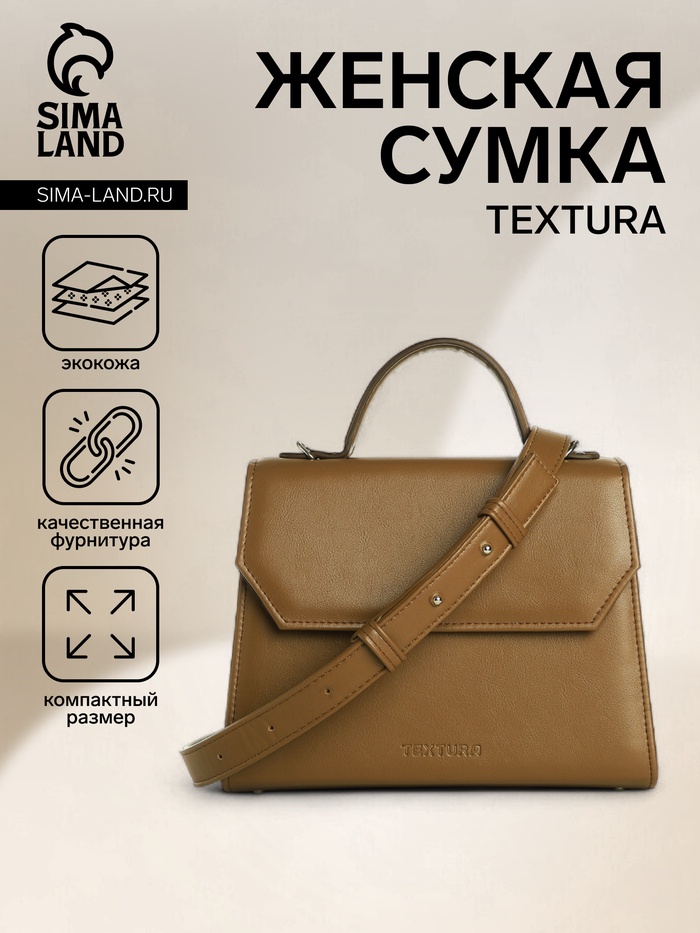 Сумка женская на магните TEXTURA, средний размер, цвет коричневый