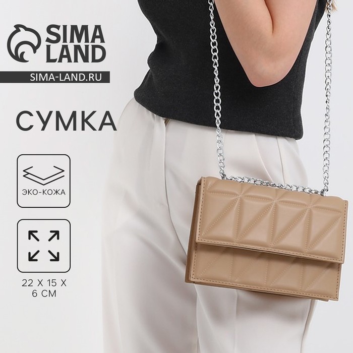 Сумка женская на клапане, 22×15×6 см, бежевая
