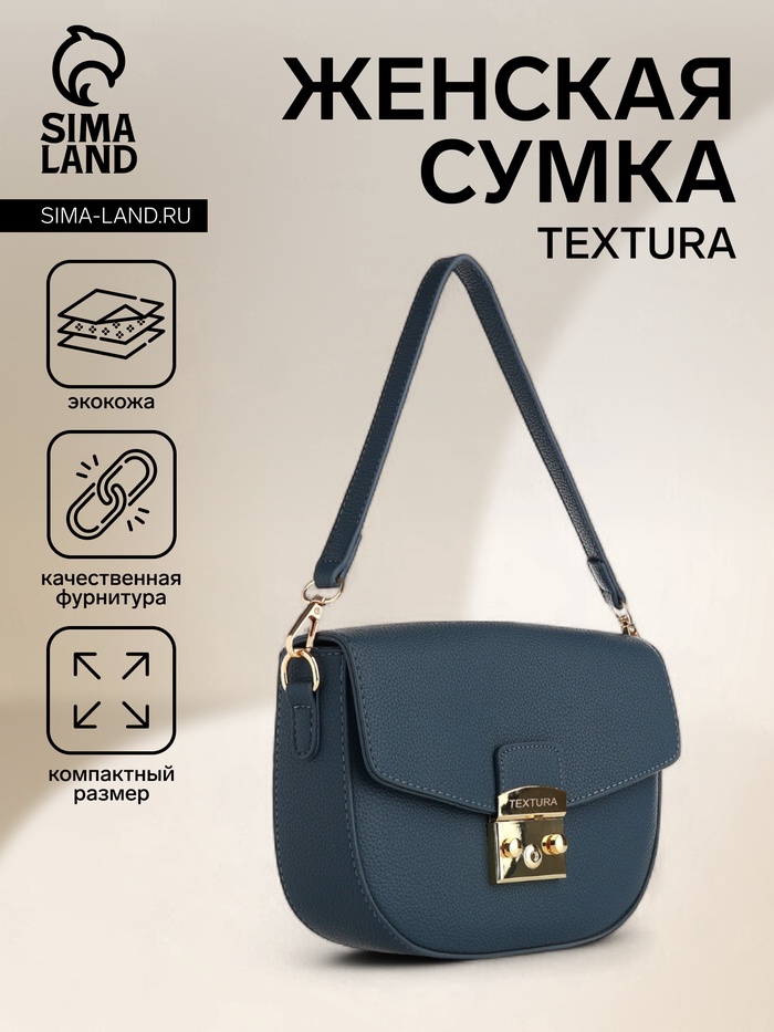 Сумка женская мессенджер TEXTURA на клапане, 17×10×18 см, синяя