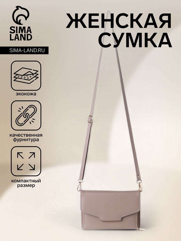 Сумка женская мессенджер на магнитах, 20×4×13 см, серая