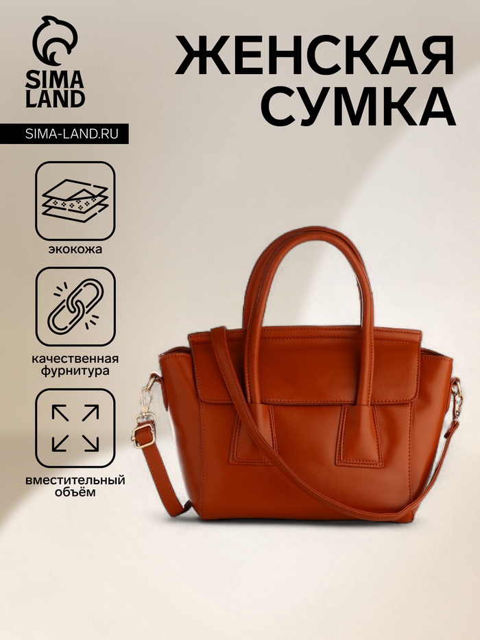 Сумка женская мессенджер на магните, 35×15×23 см, коричневая