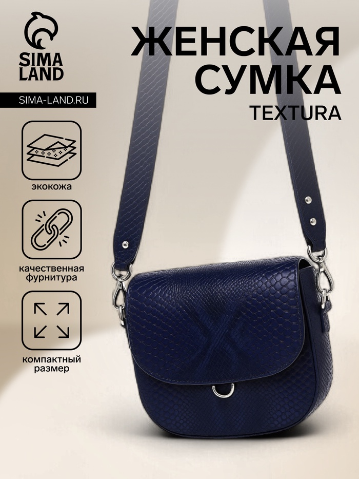 Сумка женская на клапане TEXTURA, маленький размер, цвет синий