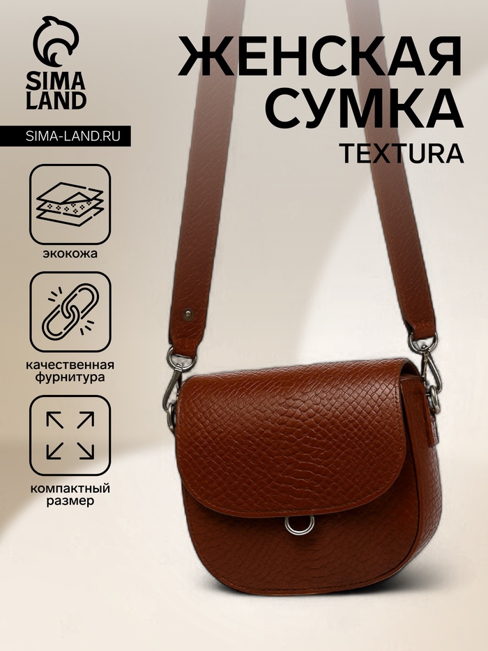 Сумка женская на клапане TEXTURA, маленький размер, цвет коричневый