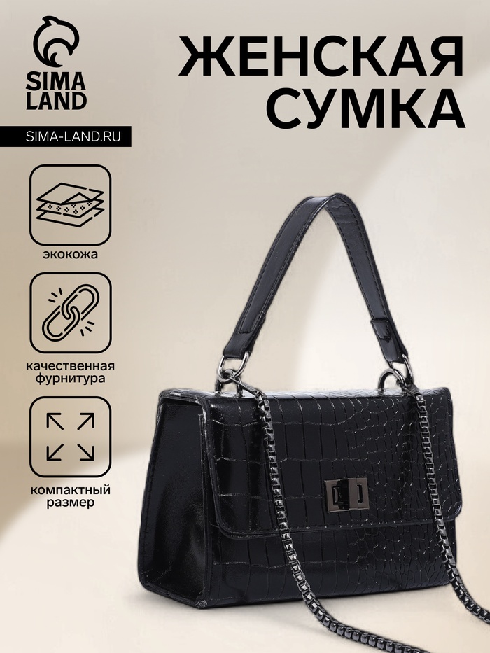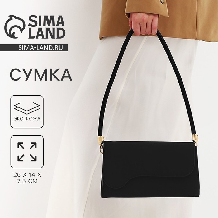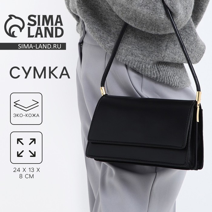 Сумка женская на клапане, 24×13×8 см, чёрная
