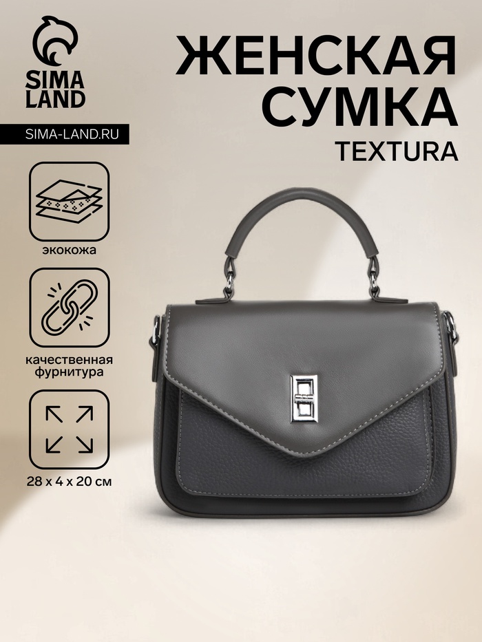 Сумка женская на клапане TEXTURA, маленький размер, цвет тёмно-серый