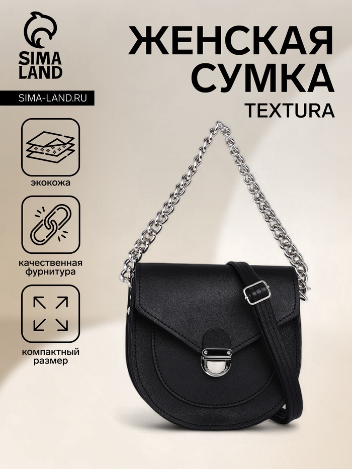 Сумка женская мессенджер TEXTURA на клапане, 17×10×18 см, чёрная