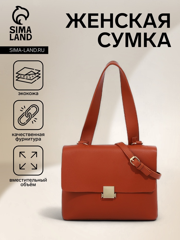 Сумка женская мессенджер на клапане, 27×9.5×20 см, рыжая