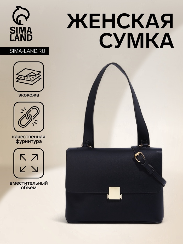Сумка женская мессенджер на клапане, 27×9.5×20 см, чёрная