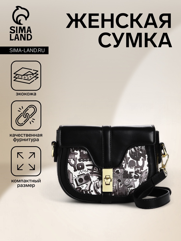 Сумка женская мессенджер на клапане, 18×6×16 см, чёрная