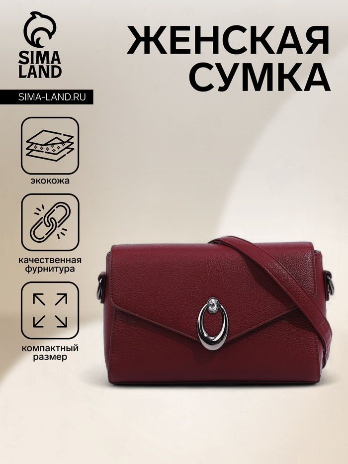 Сумка женская мессенджер на магните, 24×10×15 см, однотонная, бордовая