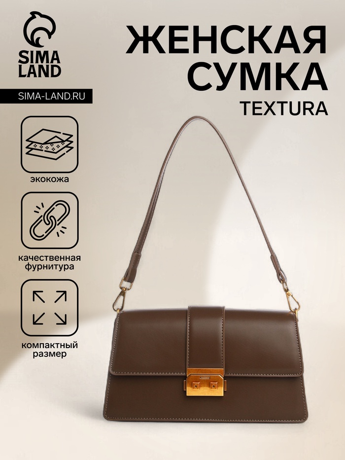 Сумка женская мессенджер TEXTURA на клапане, 26×8.5×14 см, коричневая