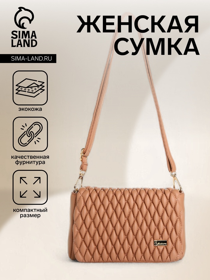 Сумка женская мессенджер на магните, 22×6×14 см, со стёжкой, коричневая