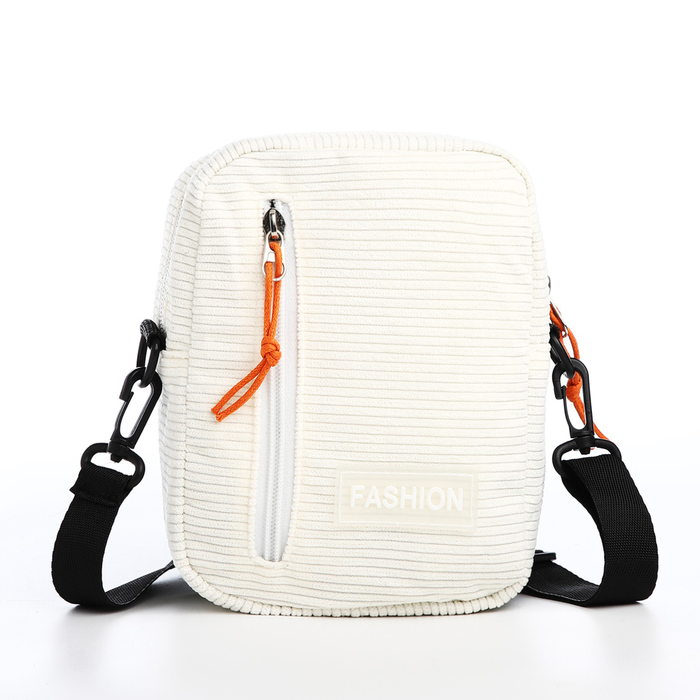 Сумка молодёжная на молнии, наружный карман, цвет белый