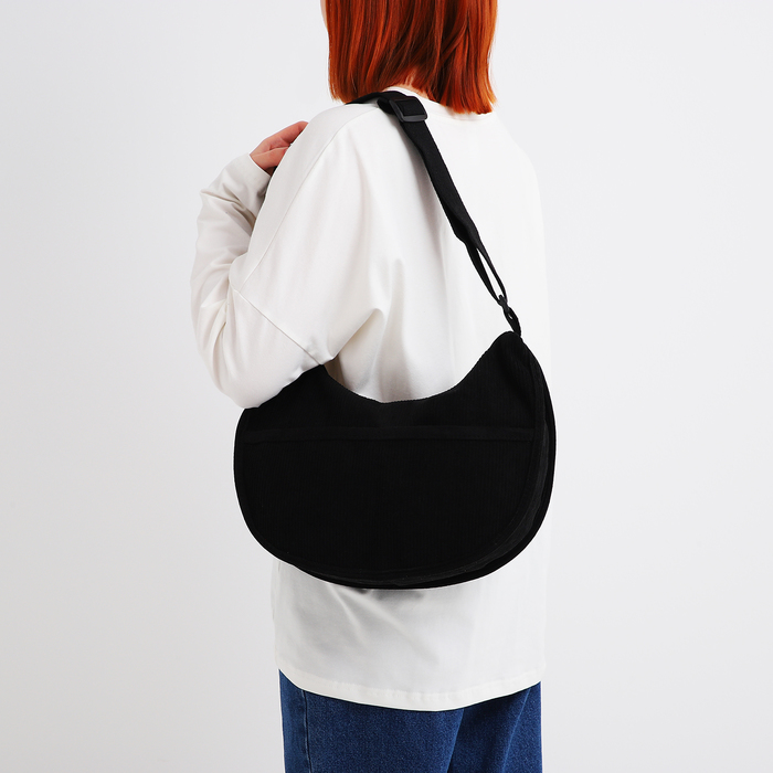 Сумка на одно плечо на молнии, с наружными карманами, 44×3×13 см, чёрная