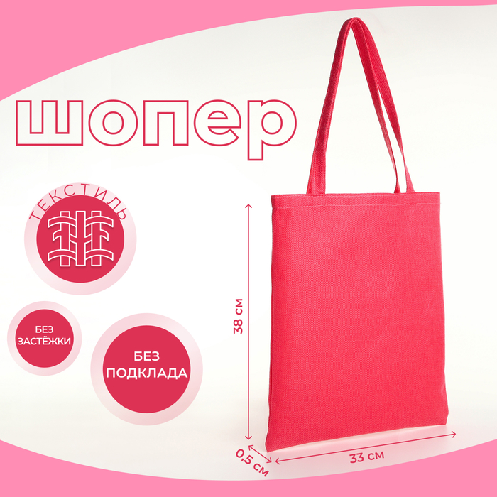 Сумка текстильная шопер без застёжки, 33×0.5×38 см, розовая