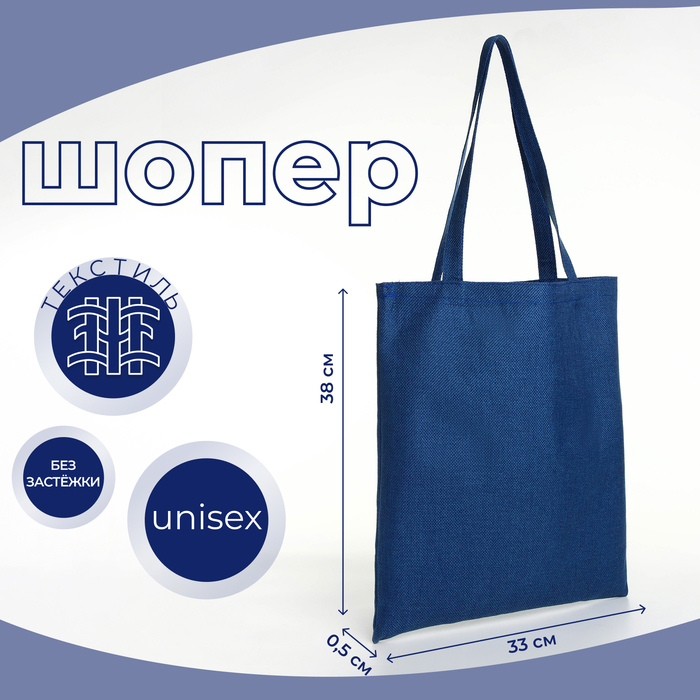 Сумка текстильная шопер без застёжки, 33×0.5×38 см, синяя