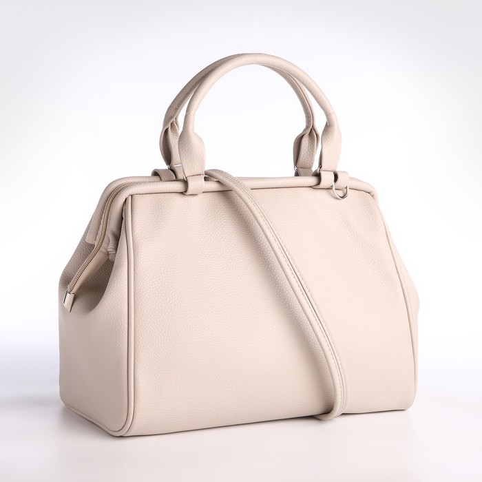 Сумка женская саквояж на молнии, 23×10×15 см, бежевая