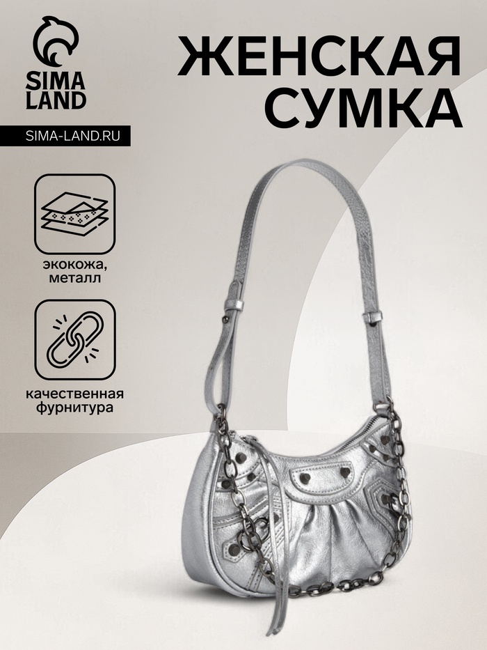 Сумка женская на молнии, цвет серебряный