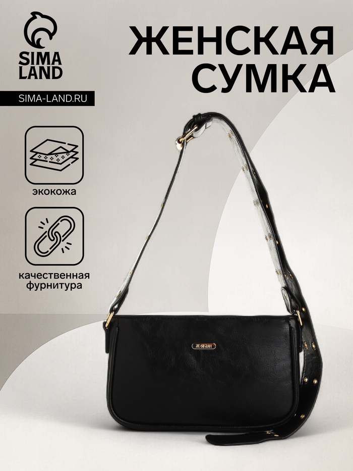 Сумка женская багет на молнии, 23×8×14 см, чёрная