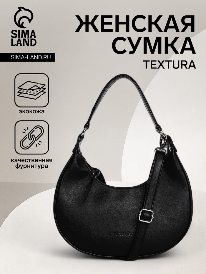 Сумка женская багет TEXTURA на молнии, 28×7×26 см, чёрная