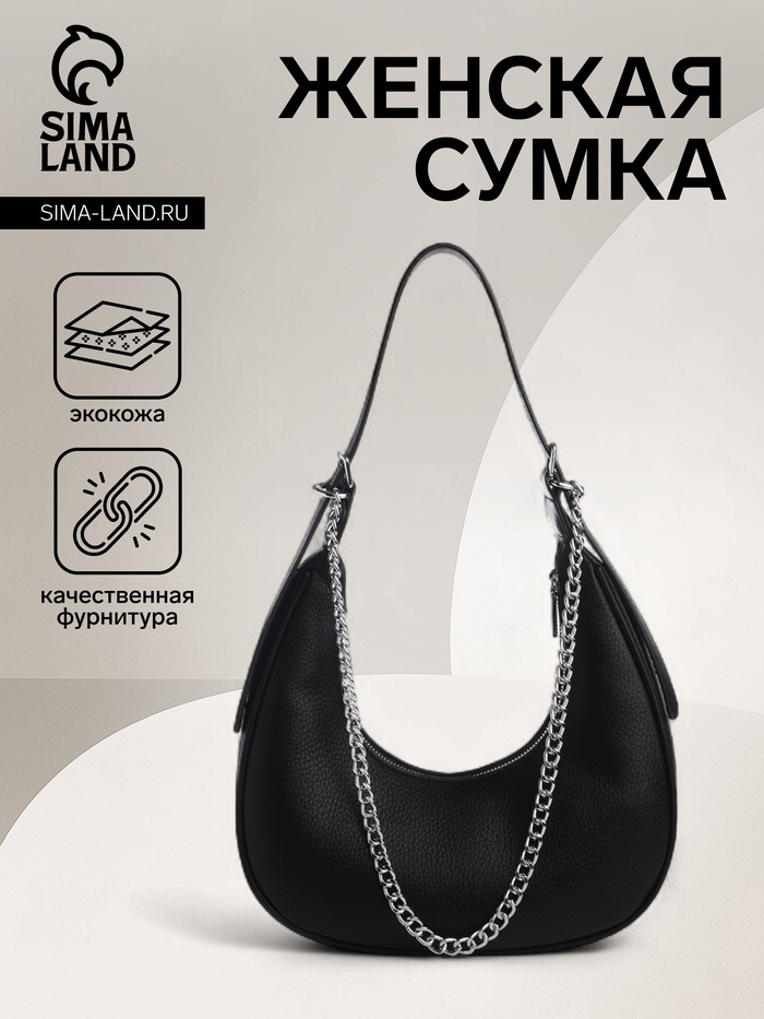 Сумка женская багет на молнии, 21.5×9×13.5 см, чёрная