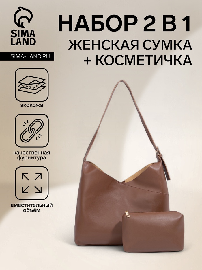 Сумка женская на молнии TEXTURA, большой размер, цвет коричневый