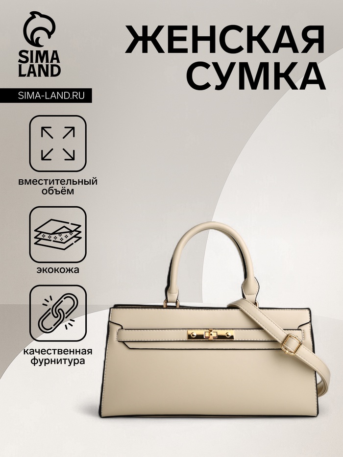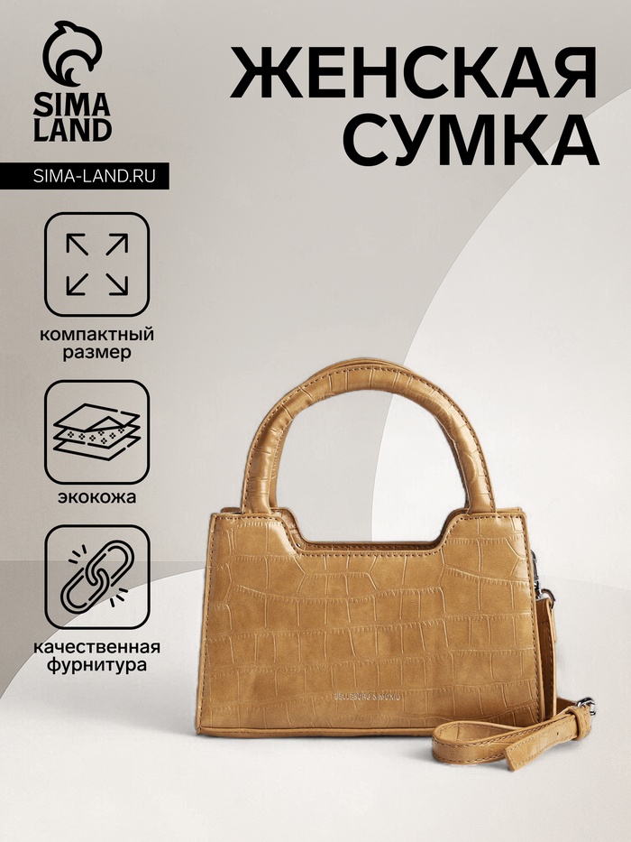 Сумка женская тоут на молнии, 22×7×11 см, бежевая