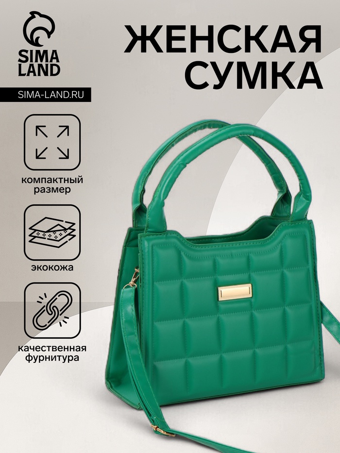 Сумка женская тоут на молнии, 25×10.5×19.5 см, зелёный
