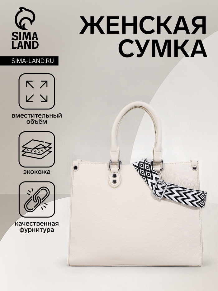 Сумка женская тоут на молнии, 31×10.5×25 см, белый