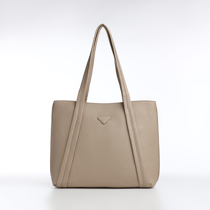 Сумка женская тоут на молнии, 25×7×14 см, однотонная, бежевая
