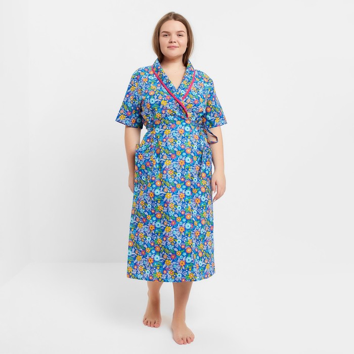 Халат женский «Запашной», цвет зелёный/синий МИКС, размер 50