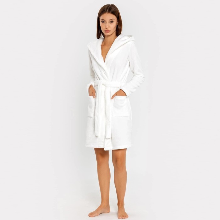 Халат махровый с капюшоном женский SL HOME: Basic "Блан де Блан", р-р S, 100% хл, 420 г/м2