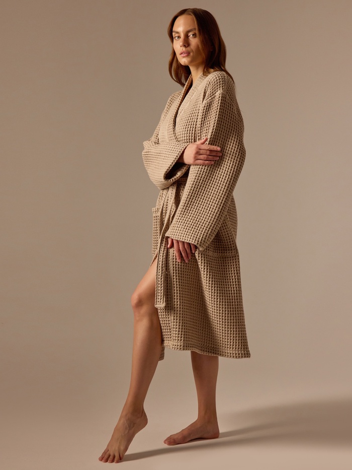 Халат вафельный женский SL HOME: Boho «Саббиа», размер M, хлопок 100%, коричневое