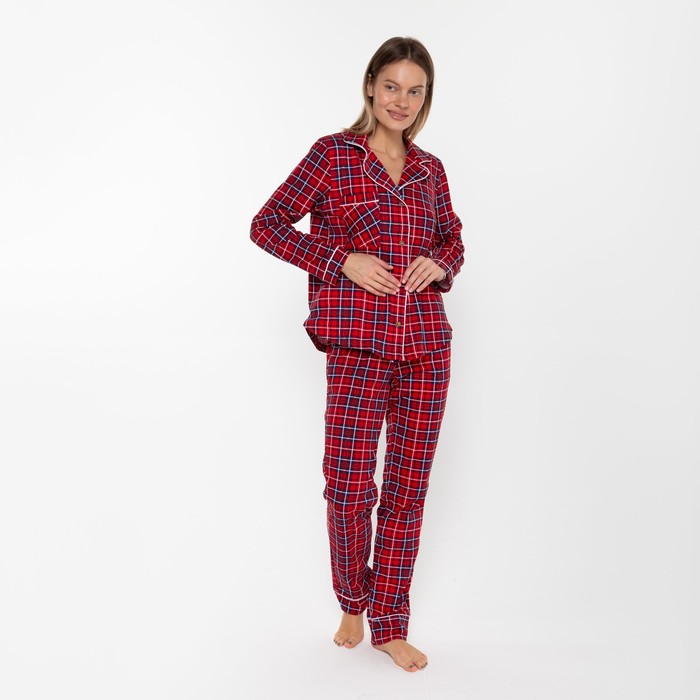 Пижама женская (лонгслив, брюки), размер 52, красный